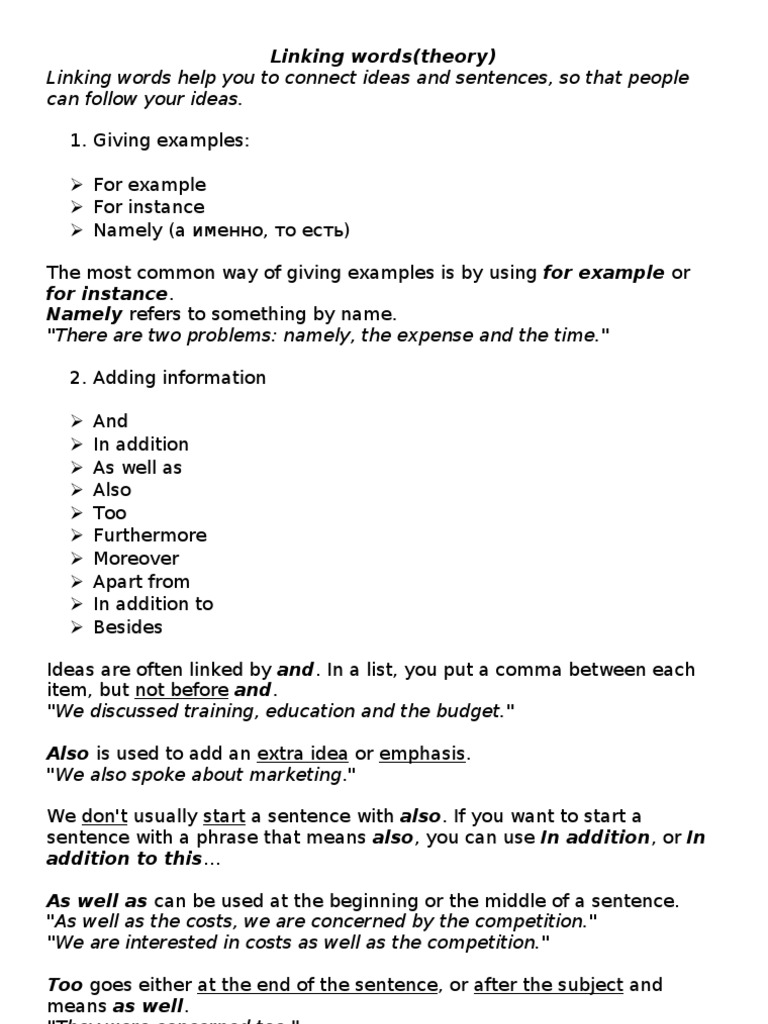 Linking Words Theory Sentence Linguistics Economics
