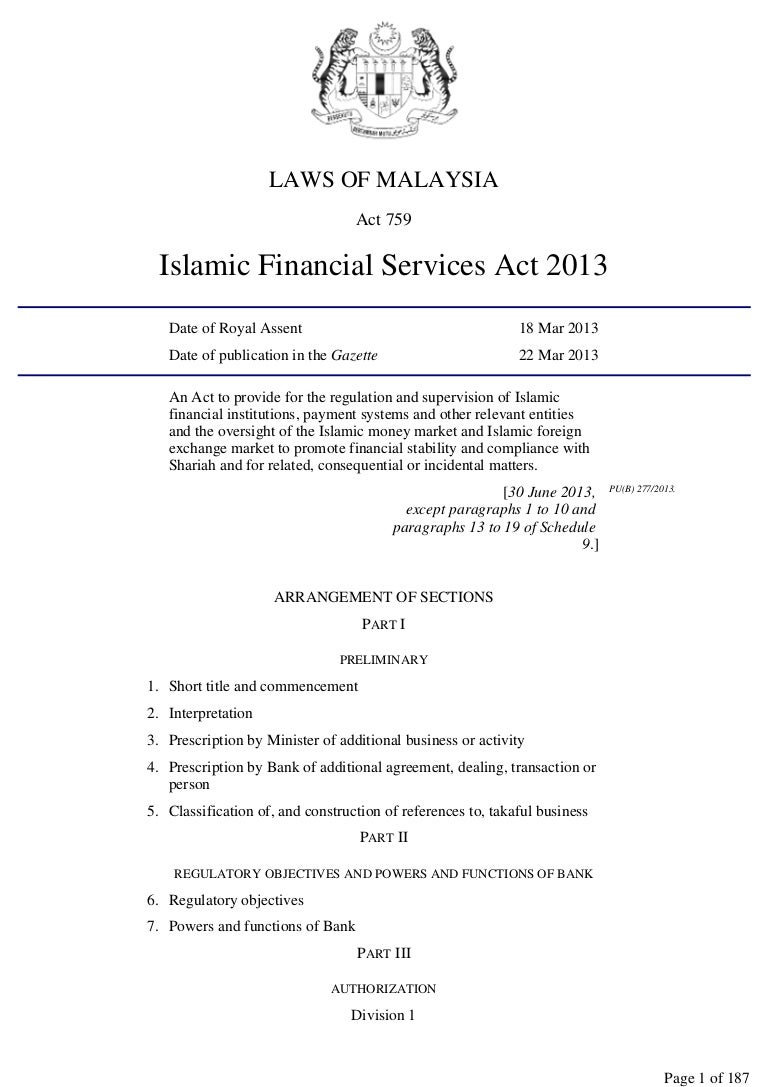 Pdf The Key Elements Of The Islamic Financial Services Act 2013 That Are Relevant To The Governance Of Islamic Financial Institutions In Malaysia Jazeel Abdul Wahid Academia Edu