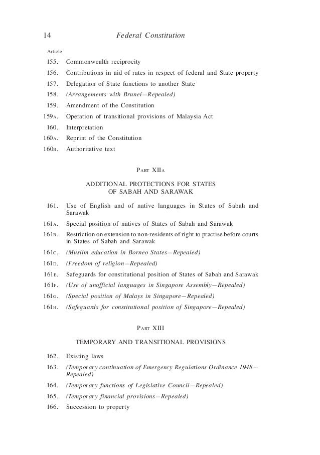 Full Text Of The Constitution Of Malaysia 2010 Reprint