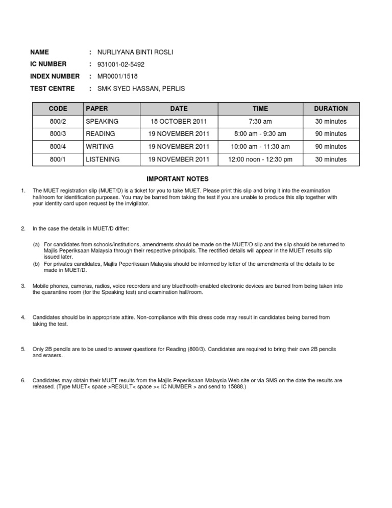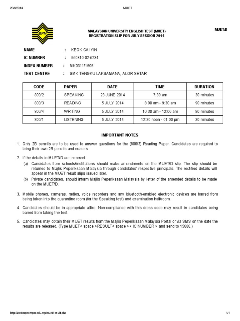 Muet Registration Slip For Session 1 Src Multimedia University Facebook
