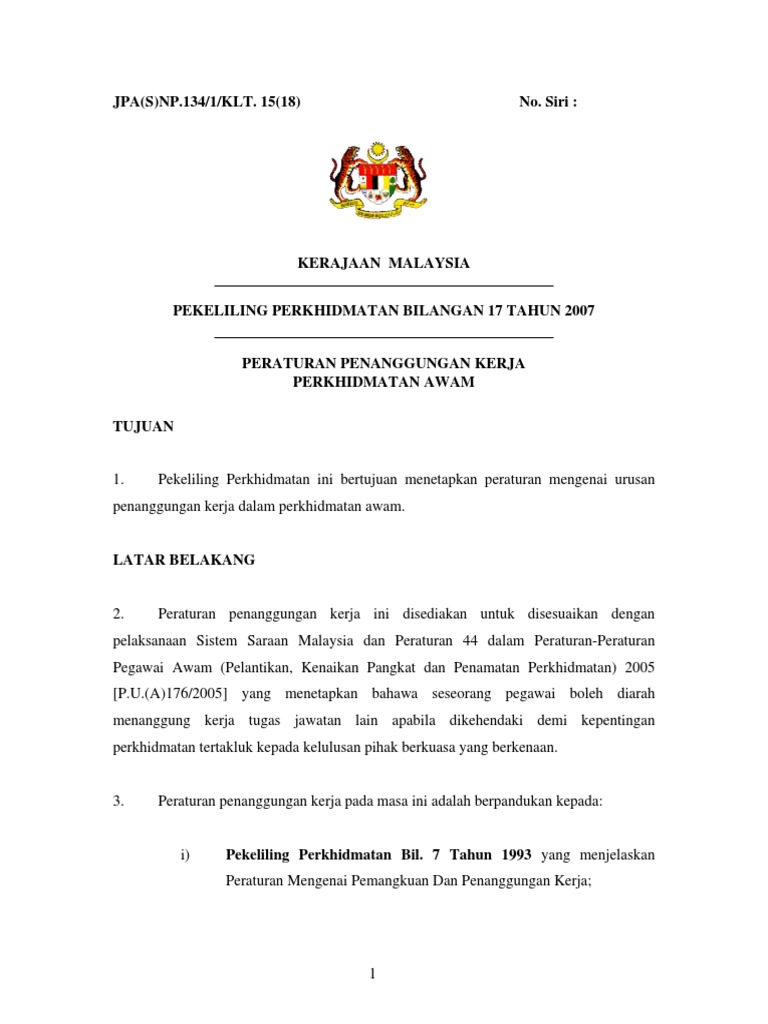 Pekeliling Perkhidmatan Bil 17 2007 Peraturan Penanggungan Kerja